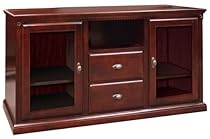 Kathy Ireland TV StandBy kmcdaidBecause the price was so reasonable I was a little concerned about the quality of this piece before it arrived. As it turns out there was no reason to worry, it really is a very nice piece of furniture. The wood was really finished nicely and had a nice shine while retaining it's slightly rustic quality. It is solid wood with beautiful finishes (glass inserts, knobs, shelf anchors) and you can see the high quality workmanship that went into this piece. Even the shipping packaging was high quality. Not only was it boxed ... » More Information about Kathy Ireland Home by Martin Huntington Club 63-1/4-Inch Full-Sized Tall Entertainment TV Console; 31-Inch Height.